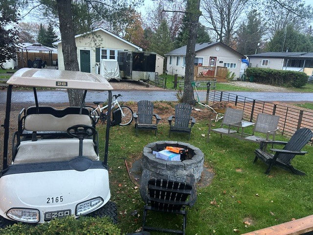 This beautiful two bedroom Seasonal unit in Maple Leaf Acres is ready for you to move in and enjoy. Lots of room to spread out and relax both inside and outside. Yes the Golf Cart is included! Enjoy your time on the deck anytime with new deck screening. This home is sitting on a cement pad so there is ample storage underneath as well as a large shed.